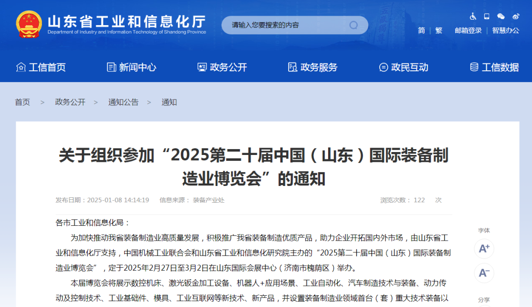 詳細(山東)國際裝備制造業博覽會(簡稱:IEME山東裝備博覽會)是由山東省人民政府和機械工業聯合會共同發起主辦的國內重點裝備制造業博覽會,博覽會創始于2006年,每年2月或3月在濟南舉辦。